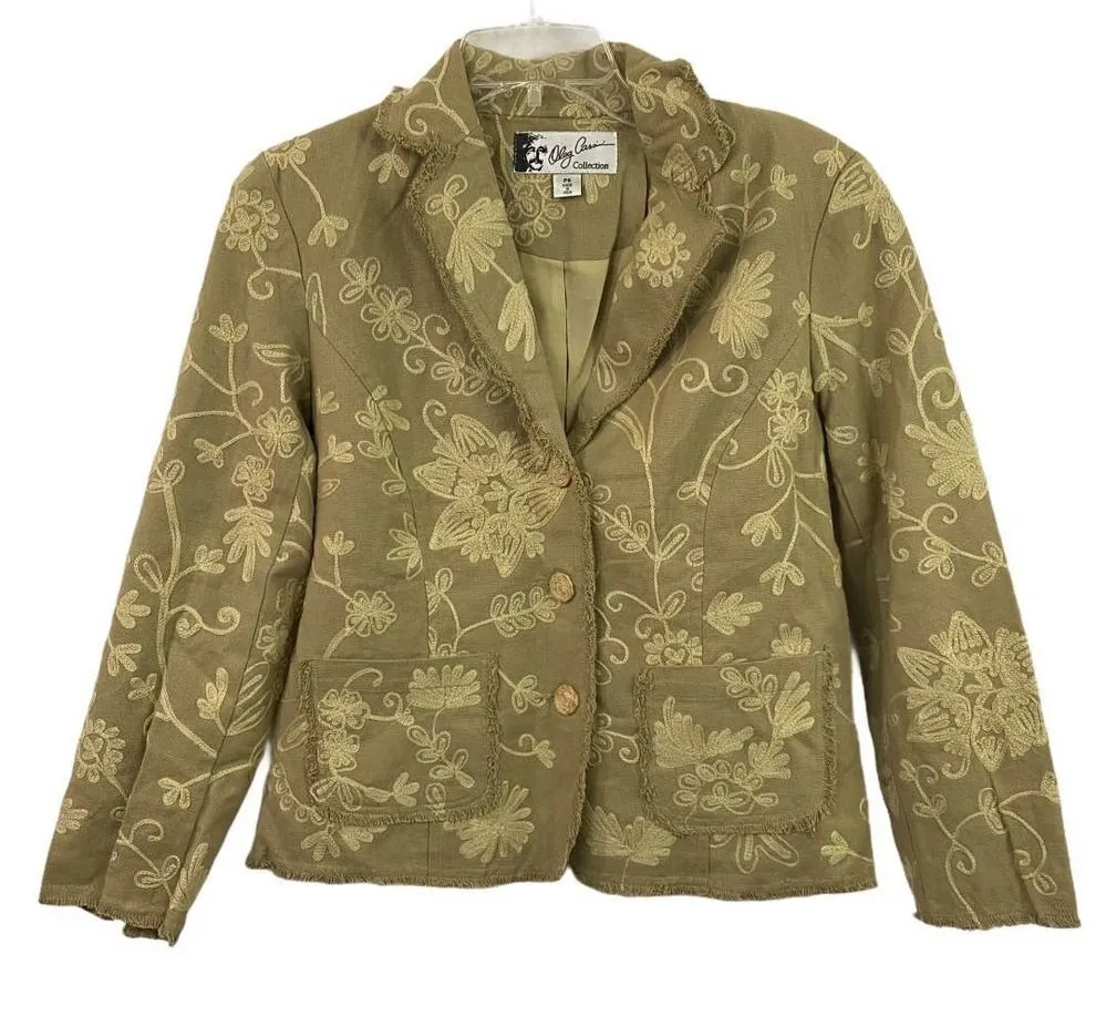 Oleg Cassini Collection Embroidered Jacket Size 8 Petite Fitted Jacket Beautifully Embroidered Flow... Show more
