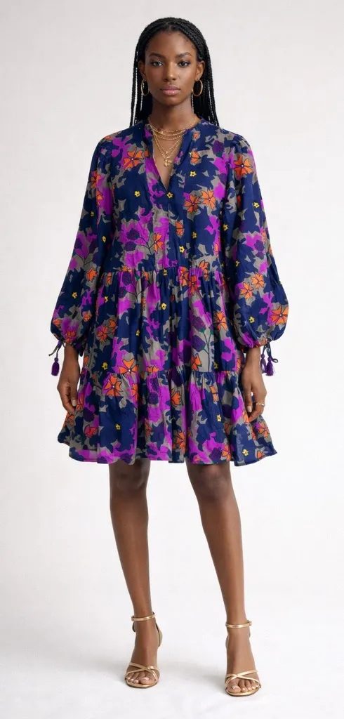 Oliphant “Suzani” puff sleeve mini dress in dark blue and purple floral print. L Size L - $115 - From Ann