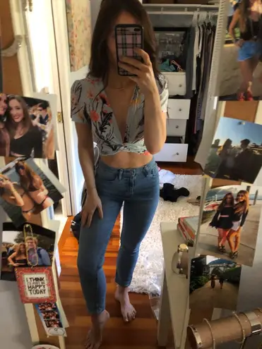 Blue Floral Tie Crop top Good Condtion Worn once Rayon fabric