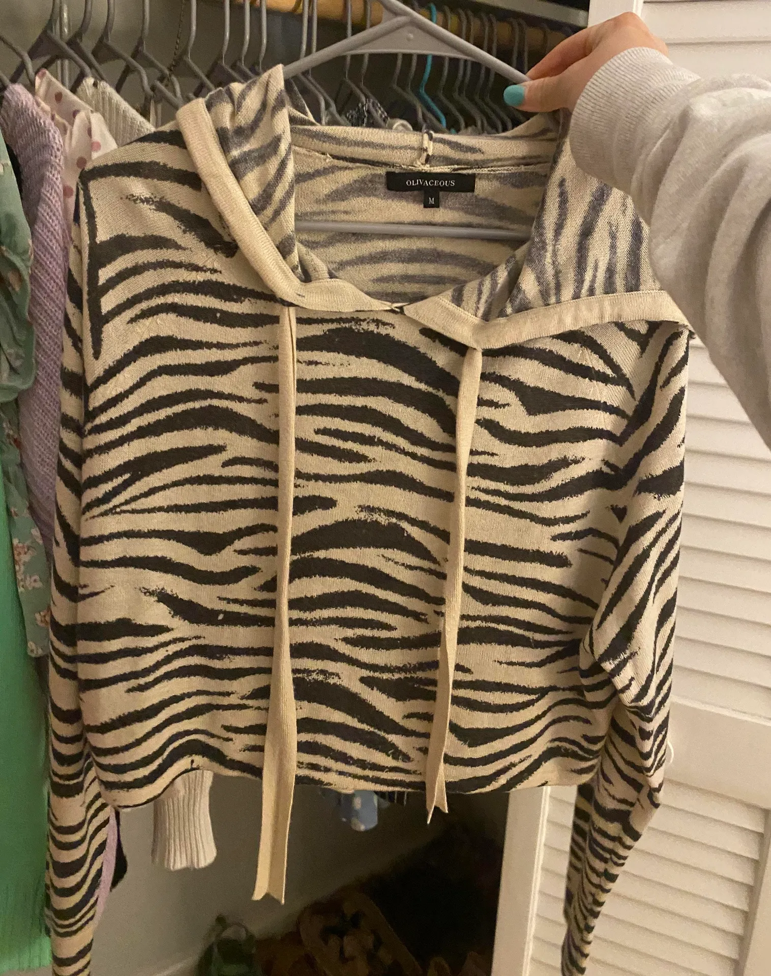 This is super cute and cropped, I love this sweater just never wear it anymore. No flaws worn twice... Show more