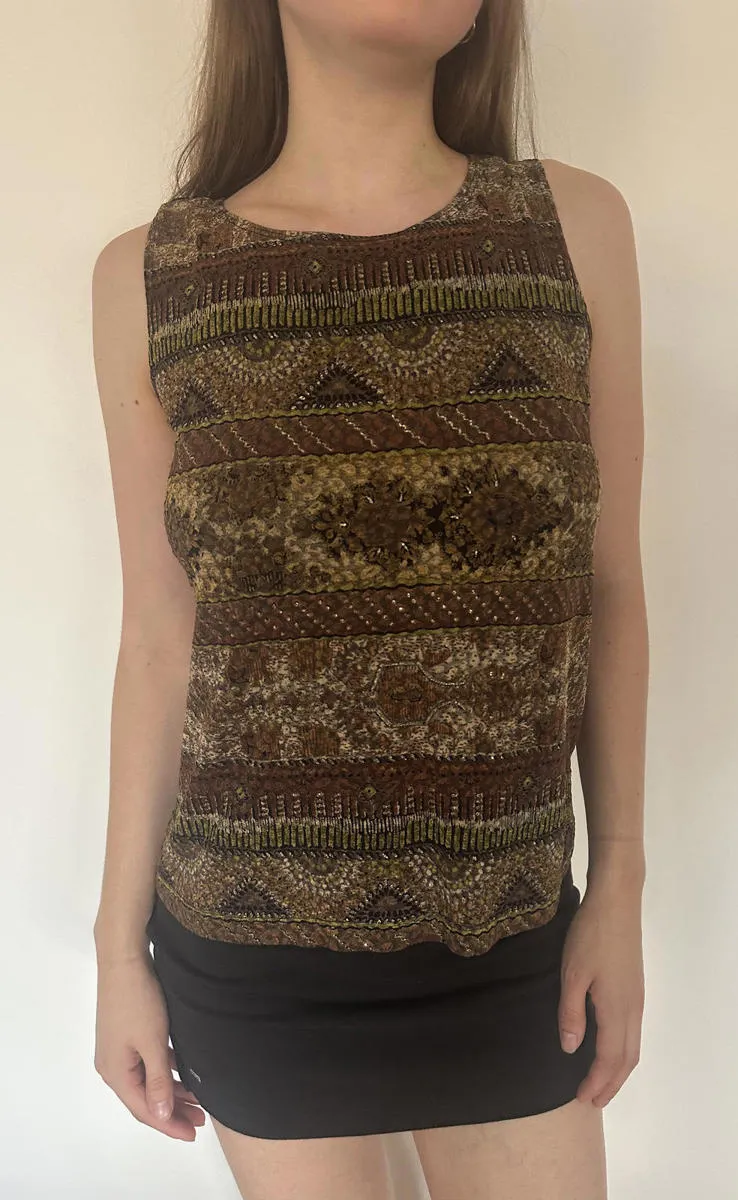 Perfect fall staple! Muted green and earthy brown paisley high neck top. A little bit big on the model, best fits a size medium (model is a size xs-s 26" waist 32D). Super chic 90s/boho vibes. Message with questions! #vintage #90s #fall #olivegreen #earthy