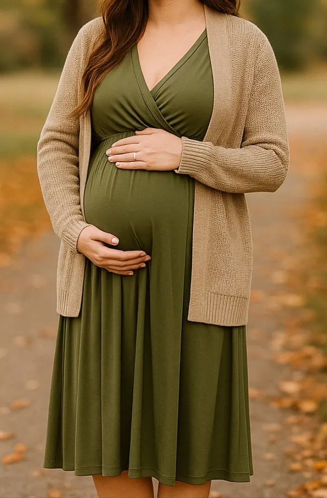 Super soft and stretchy Old Navy maternity dress in a flattering olive green. Sleeveless with a V-ne... Show more
