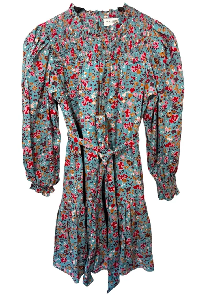 Olivia James The Label Floral Mini Dress ls smocked XS Boho Belted gardencore Blue - $54 - From J