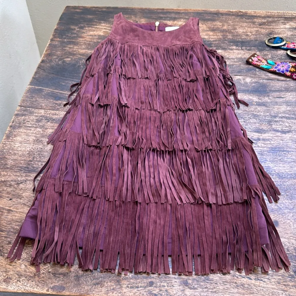 Olivia Palermo Chelsea 28 fringe real leather suede burgundy Sleeveless dress Brown Size XS - $83 - From Tracie