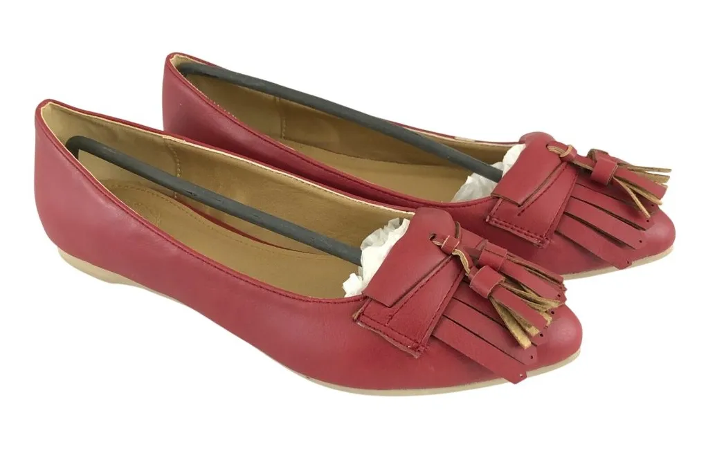 Ollio Womens Ballet Flats Tassel Fringe Faux Leather Slip On Red Pointed Toe 6 - $20 - From Jen