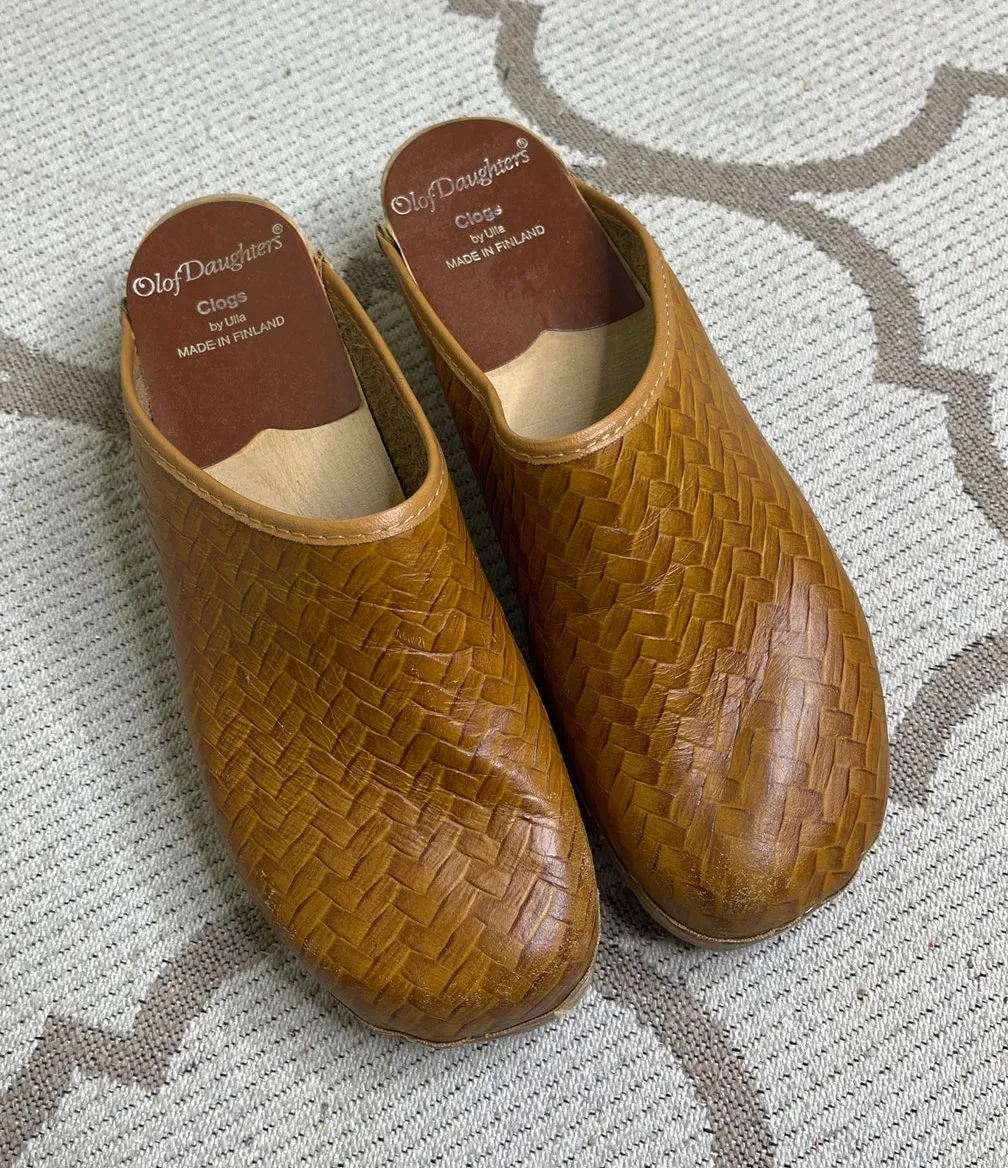 Olof Daughters Wooden Leather Clogs by Ulla made in Finland, size 38/ US 7.5 Brown - $95 - From Maria