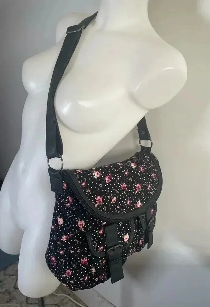 **Olsenboye Floral Crossbody Bag - Corduroy Black with Pink Leather Strap, GUC** Add a pop of floral charm to your ensemble with this Olsenboye crossbody bag. Made from black corduroy with a vibrant pink leather strap, this bag combines durability with a stylish design. In good used condition (GUC), it features a beautiful floral pattern that makes it a standout accessory. - **Brand**: Olsenboye - **Style**: Floral Crossbody Bag - **Material**: Corduroy (Black) with Leather Strap - **Condition**: Good Used Condition (GUC) - **Details**: Floral pattern, crossbody design *Note: There is a stain on the inside flap as shown in the photos. This does not affect the use or appearance of the outside of the bag. Comes as shown. Good quality and super cute!* Enhance your look with this unique and fashionable bag, perfect for daily use or special occasions.