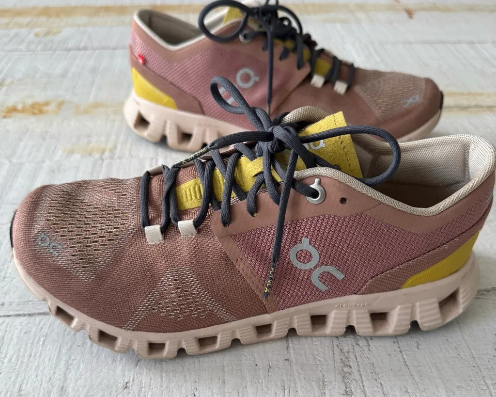 Shoes are in good condition and come from a smoke free home. Please note, there are marker stains on the insides of the shoes. * ON Running * women’s size 7 * On Cloud X 2.0 * mocha/sandstone * Swiss engineering * please see photos for small blemishes * cushioned insoles * lightweight
