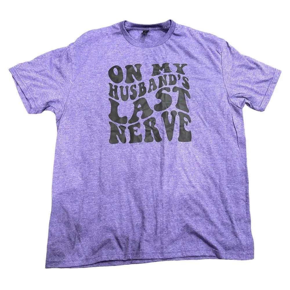 'On My Husbands Last Nerve' Graphic T-Shirt in Purple, Size XL​​​ Purple - $20 - From Jasmine