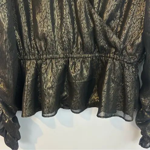 Walter Baker Faulk blouse/top Bronze/gold metallic Front cutout Peplum fit Elastic waist Animal pr... Show more