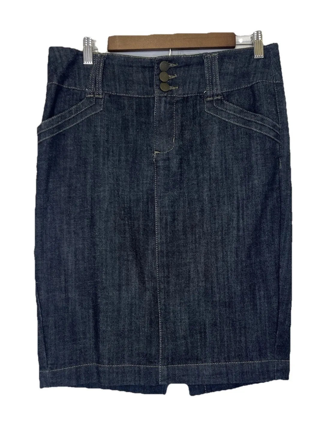 Stylish One 5 One women’s denim jean skirt in a classic dark wash with a flattering pencil silhouette. A timeless Y2K-inspired basic that pairs easily with casual or dressy tops. Comfortable stretch fabric for an easy, flattering fit. Details: • Brand: One 5 One • Size: Women’s Medium • Color: Dark Wash Denim • Style: Pencil / Y2K / Basic • Material: Cotton, Spandex • Condition: Pre-owned, Excellent Condition Measurements (approx.): • Waist: 32” • Length: 24” Smoke-free home. Please check measurements for best fit. Ships quickly