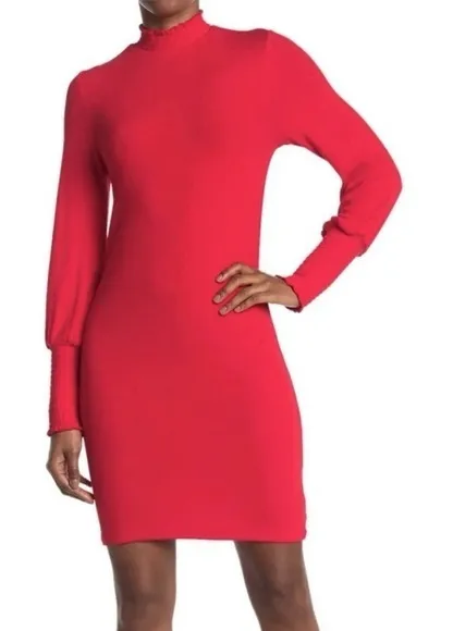 One One Six Red Smocked Mock Neck Knit Bodycon Dress ~ this stretchy thin ribbed knit dressss fits like on the stock model. It’s not a shift. It’s form fitting and hugs all your curves. ~ smocked neck and cuffs ~ unlined ~ bishop sleeves ~ mini style ~ soft fabric ~ there is one spot on the back of one sleeve. The remainder is in excellent condition ~ drycleaned and ready to wear. Size: Large. Fits TTS Length: 34” Pit to pit: 18” before stretch Holiday glam festive bright chic jewel tone Xmas Christmas New Year’s Eve trendy date night dinner evening bridesmaid wedding guest bridal shower rehearsal dinner gala prom homecoming formal Semi-formal chic minimalist mod special occasion gala