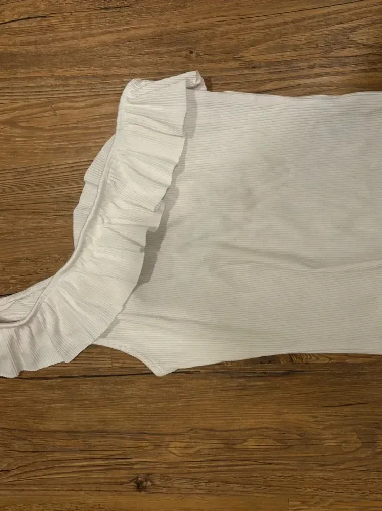 One Shoulder White Ruffle game day shirt - $12 - From Emerson