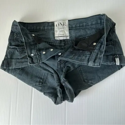 One Teaspoon x Free People Low Rise Washed Black Bandits in size 24. Features a washed gray black co... Show more