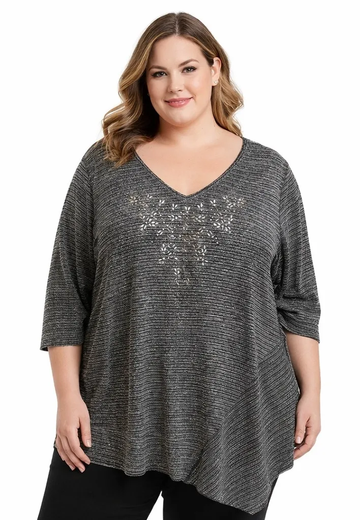 One World Sweater Women's Size 2X 3/4 Sleeves Embellished Lightweight Black Gray - $28 - From Beth