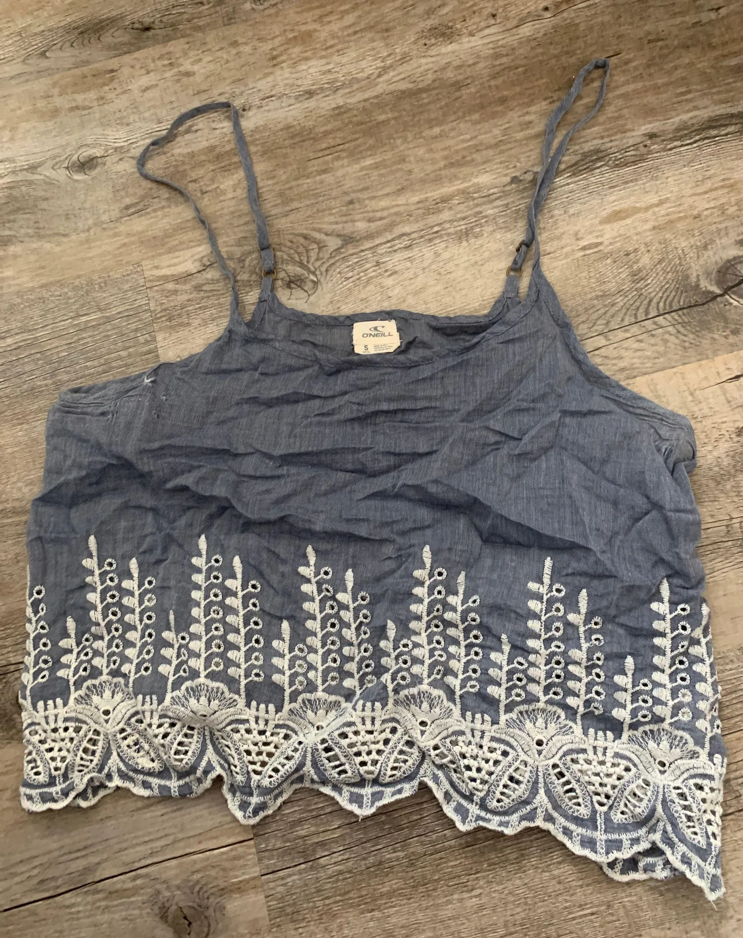 Blue and white embroidered spaghetti strap crop top, super cute! fits well