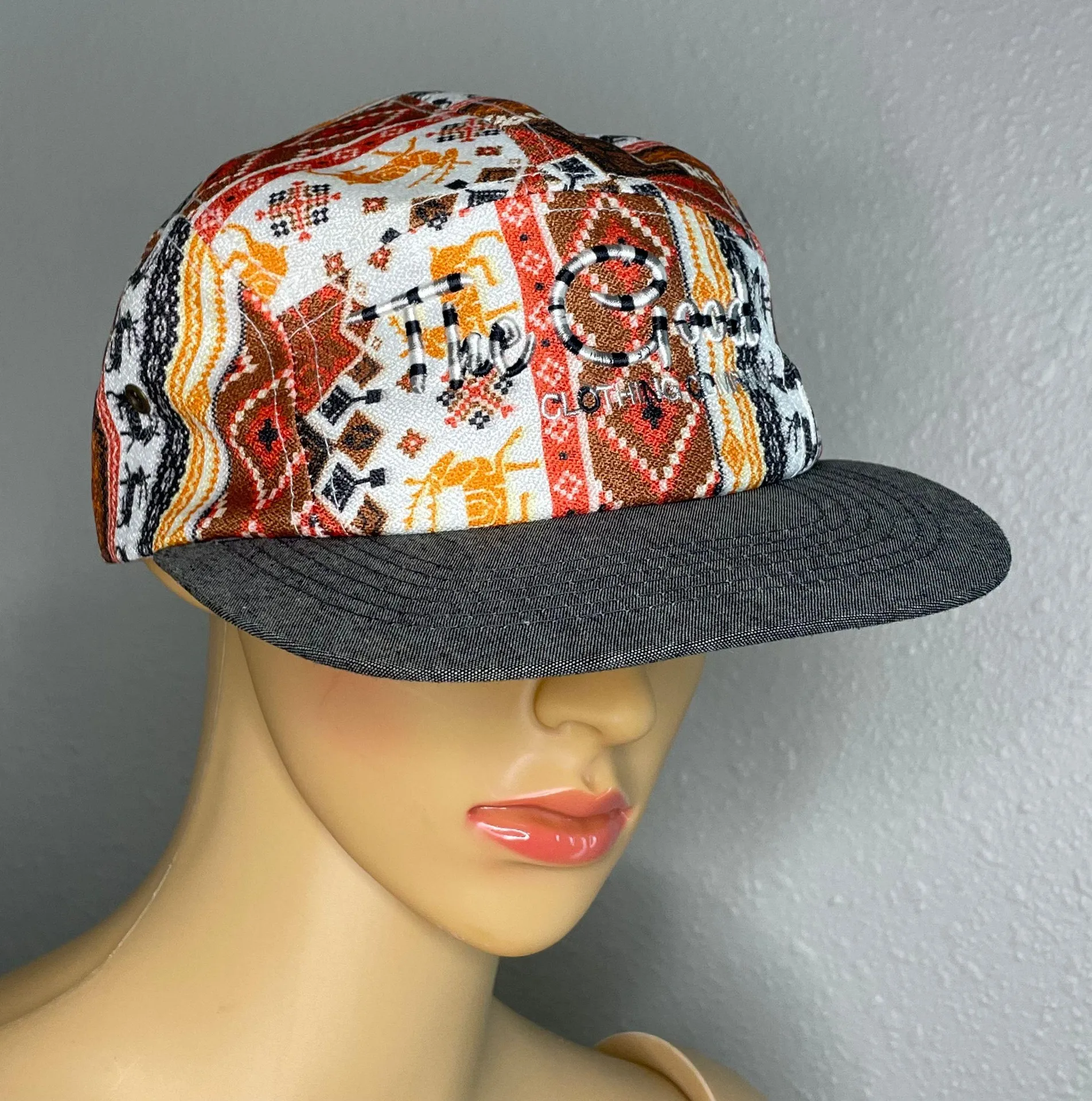 Only See The Good Clothing Company Colorful Native Western Pattern Flat Bill Hat EUC Some wear as far as fading on inside however outside is perfect condition Adjustable Buckle in the back Colors are brown orange white gray Cream black Smoke free home Measurements are in pictures and are approximate