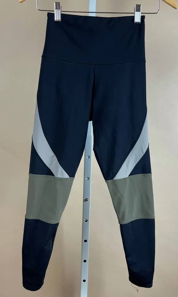 Black, olive green and beige/tan leggings. Mesh detail on calves. High rise. In excellent condition!... Show more