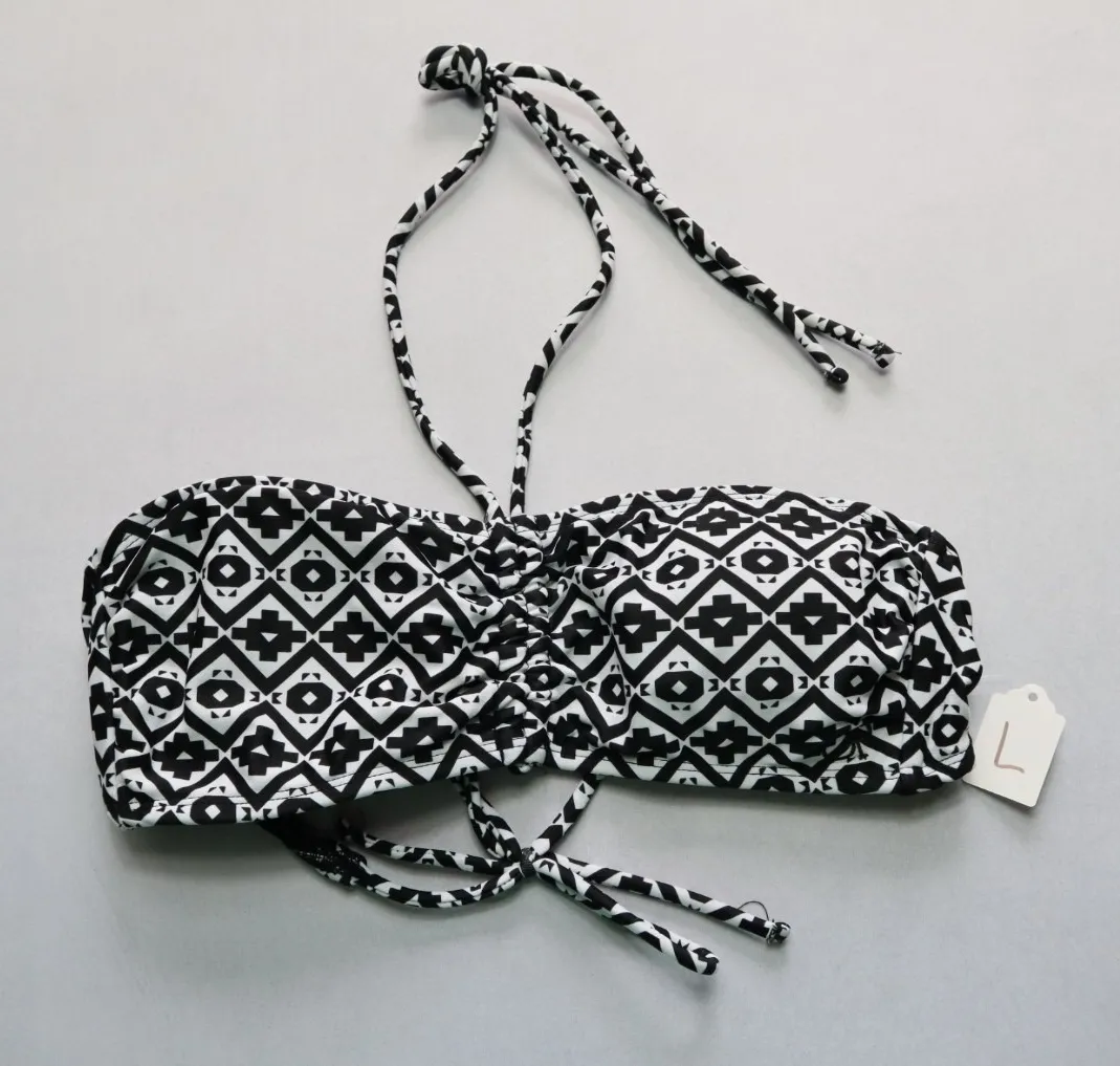 OP Black White Tribal Halter Swim Sports Bra Beach Bralette Bikini Top L Large Padded Halter Ties Ba... Show more