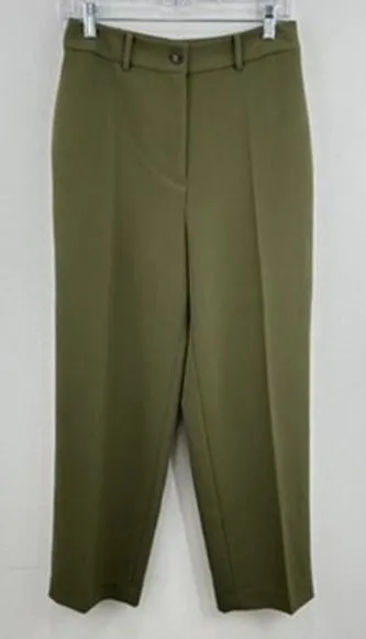 Open Edit Nordstrom Army Olive Green Crop Pants Size 6 High Rise Wide Leg Career Casual NWOT in Excellent Condition Approximate Measurements: Waist Flat Lay: 14" Rise: 13" Inseam: 27" Leg Opening Flat Lay: 8" Sophisticated olive green crop pants from Open Edit, perfect for adding a touch of understated elegance to your wardrobe. These pants feature a flattering high-rise waist, a streamlined silhouette, and a cropped length that's both modern and versatile. Details include front pockets and a button closure at the waist. The neutral hue and tailored design make them suitable for a range of occasions, from a professional office setting to a casual weekend brunch or a stylish date night. Style: Dress Pants Color: Green Department: Women Type: Pants Material: Polyester, Rayon, Spandex Leg Style: Straight Features: Pockets, High-Rise, Crop, Easy Care Fabric Type: Twill Closure: Button, Zip Pattern: Solid Accents: Button Occasion: Business, Casual, Workwear Keywords: Open Edit, olive green pants, crop pants, high rise pants, womens pants, size 6, career pants, casual pants, cropped trousers, office wear, recycled polyester, modern pants, straight leg, dress pants