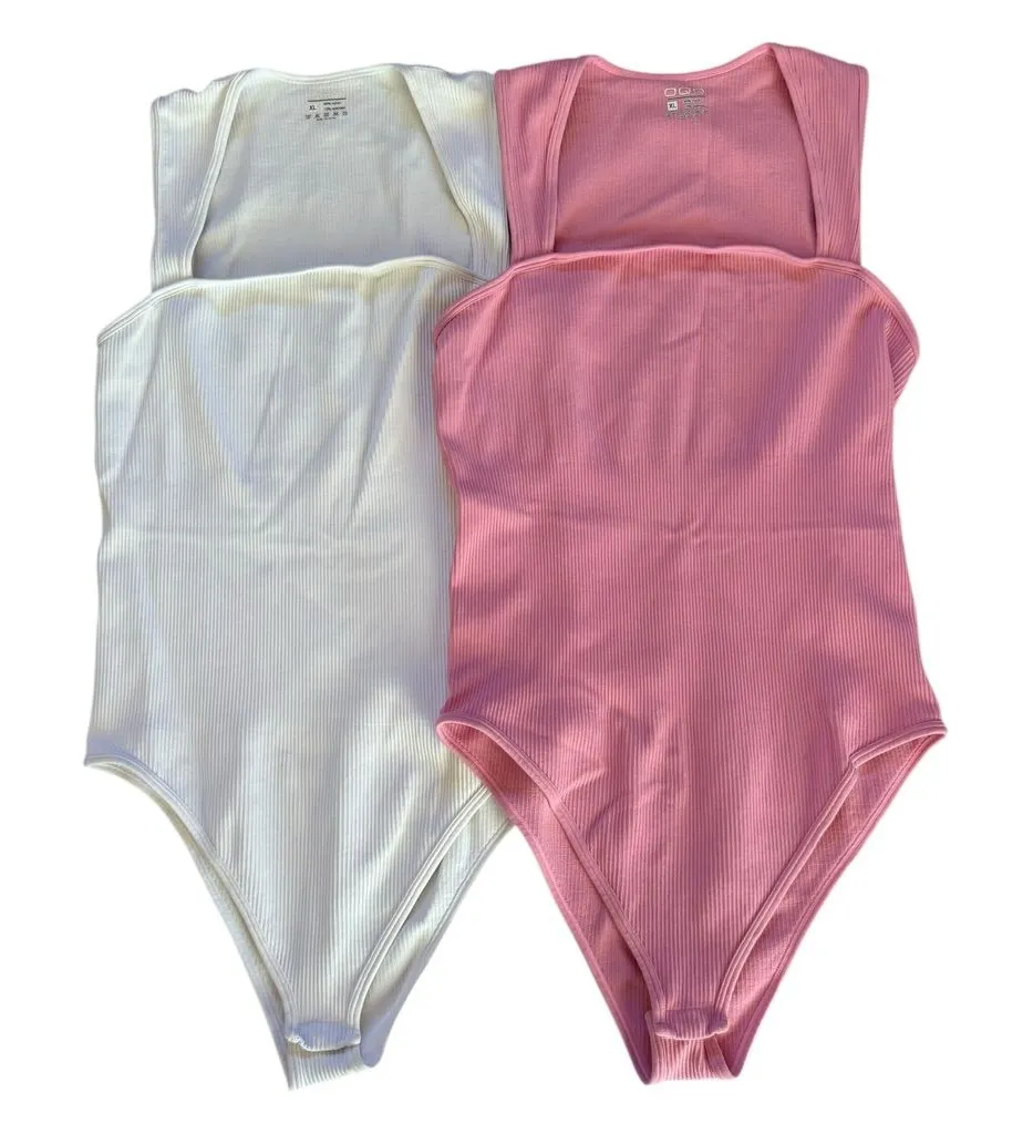 OQQ Ribbed Bodysuit Bundle Of 2 Square Neck Sleeveless Womens XL Pink White - $31 - From Jessica