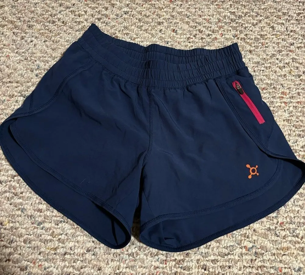 Orangetheory Fitness OTF Navy Blue Running Shorts Lined Size XS Great condition. No rips, stains or flaws. Gently worn. Features built in liner, zipper pocket and OTF Splat logo