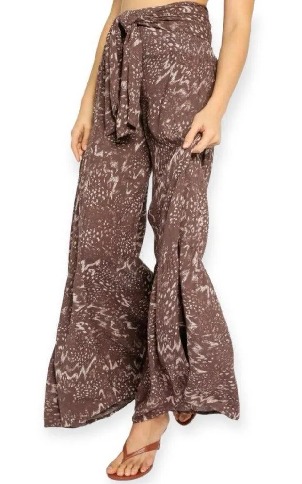Olivaceous Womens Pants Small Tiered Wide Leg Rayon Elastic Waist Pull On Brown Excellent pre owned... Show more