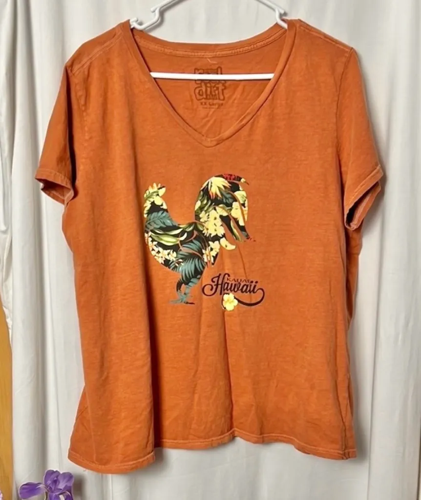 Original Real Dirt Shirt Orange Graphic Hawaiian Short Sleeve Tee Size XXL Brown - $12 - From Rachel