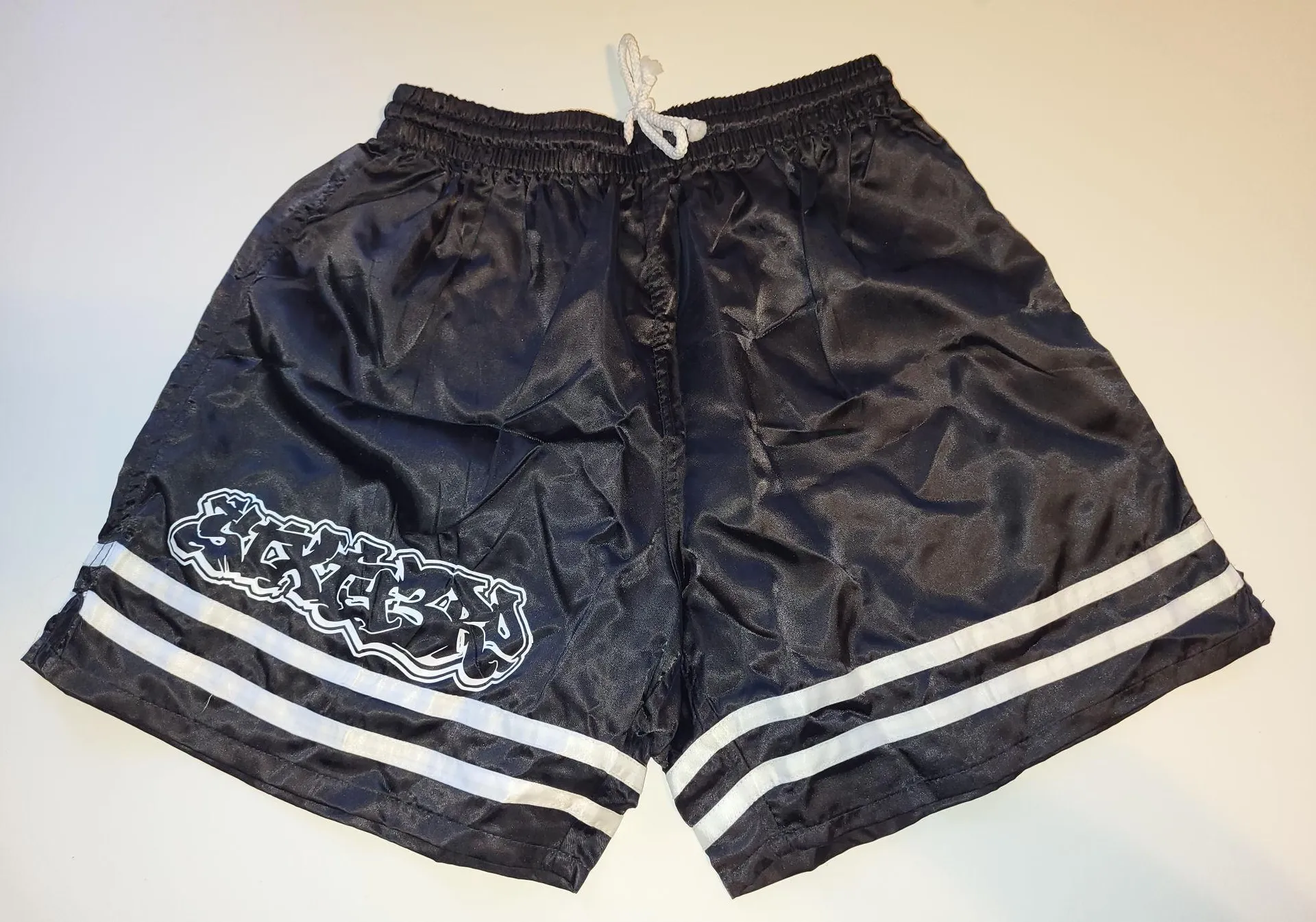 Original Sixty3rd shorts designed by famous NYC graffiti artist Topaz (Topaz One) who was one of the original founders of 5pointz in Long Island City New York (Queens). Shorts are 100% nylon. The first two pictures are the front and the last two are the back of the shorts. Size medium, no pockets.