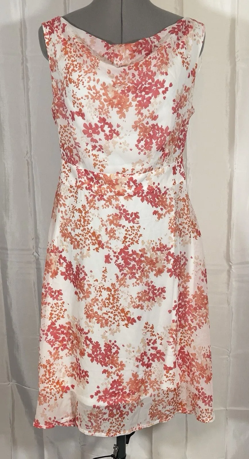 Orsay A-Line floral dress, boatneck, sleeveless, belted, zipper back, mid length, fully lined, summer dress. The dress has a floral design on a white background and a belted waist. This dress has never been worn but the tags were removed hence the preowned condition. The dress is a European size 42, which is approximate to a US size 12. Please pay attention to the measurements below: Shoulder to hem 38 Bust 42 Waist 34 Waist to hem 23 Items typically ship within 24 hours of payment. Returns accepted within 30 days. Please do not remove tags from new items prior to fitting. Any NWT items returned without tags attached will be subject to a partial refund.
