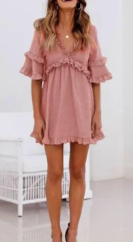 Orsle Daily V Neck Ruffle Design Mini Dres Pink - $30 (40% Off Retail) - From Ashley