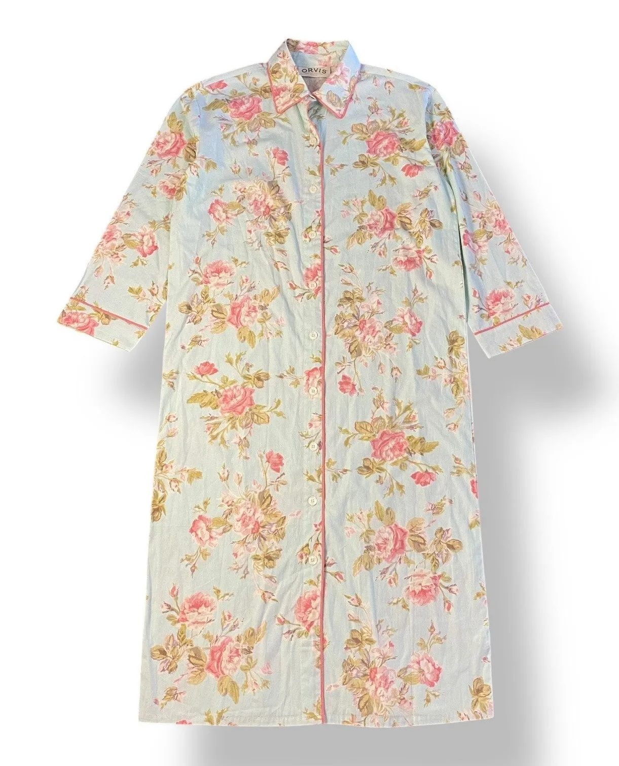 Orvis Blue Floral Cotton Long Sleeve Button Up Long Nightgown Size S Cottage Measurements in photos... Show more