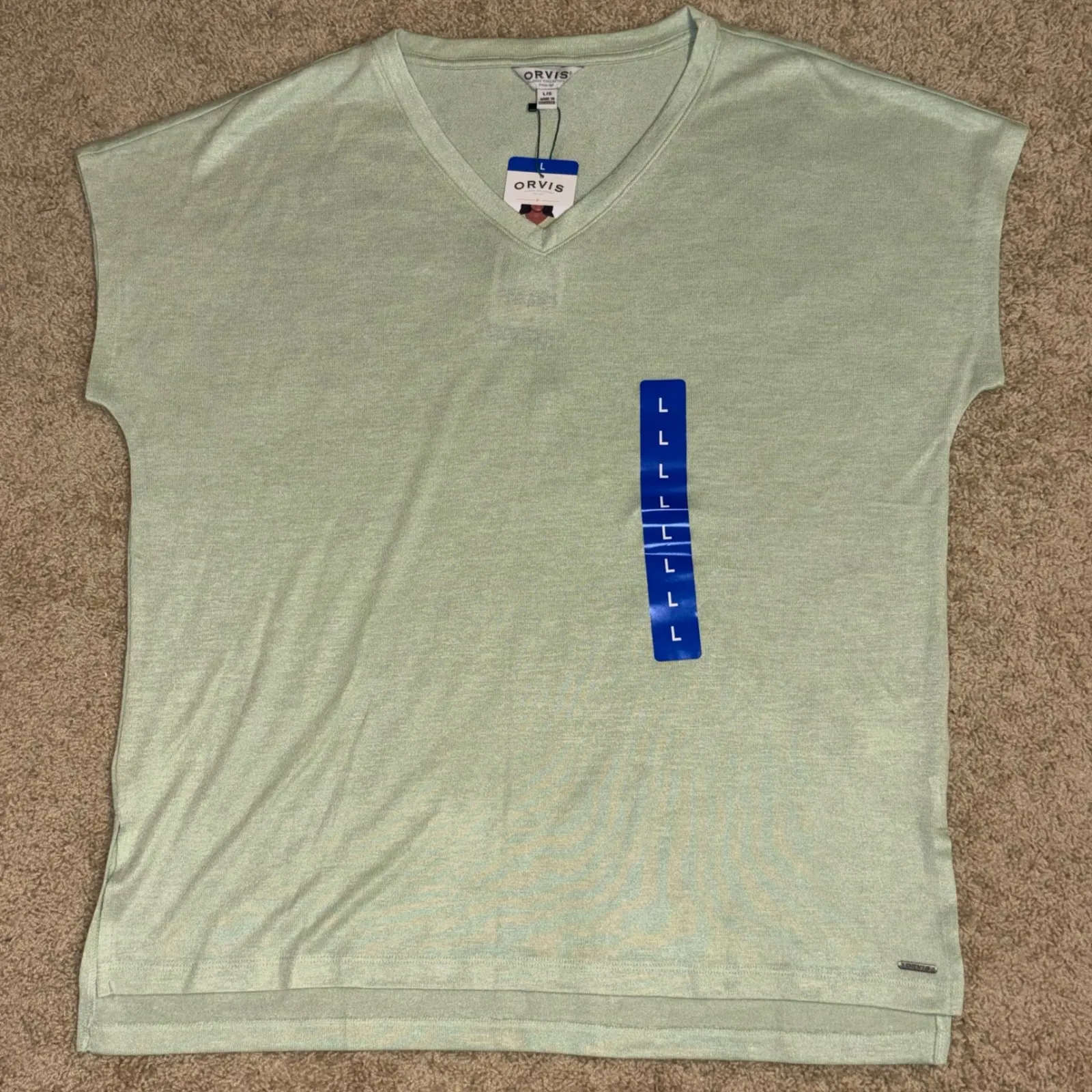 NWT with no flaws Lightweight material, side slits. Measurements are approximate. Slight color variations may be seen in pictures due to lighting and camera settings. please see measurements to determine fit. Non smoking dog friendly home Color: Green Type: T-Shirt Department: Women Style: Basic Material: Polyester Blend, Rayon, Spandex, Polyester Neckline: V-Neck Sleeve Length: Short Sleeve Sleeve Type: Cap Sleeve Pattern: Solid Features: Lightweight, V-Neck, Breathable, Relaxed Fit Fit: Relaxed Keywords: Orvis, Classic Collection, V-Neck, Cap Sleeve, T-Shirt, Tee, Top, Lightweight, Casual, Summer, Green, Womens, Large