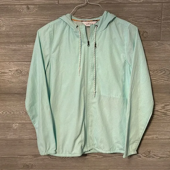 Questions? Leave a comment below! Vintage Classic Orvis Teal Blue Green Windbreaker Jacket. Drawstring Hood, zipper in great condition. Outdoor! Vented Back Flap. Inner and Outer pockets. Very lightweight. Packable. Can be that perfect jacket you keep in the car for quick weather changes or chilly restaurants! No issues with material. No tears, rips, stains. All intact. Freshly washed. Smoke Free home. I would not sell anything that I would not buy for myself or my family! Packaged sweetly and shipped quick! Thanks for looking!