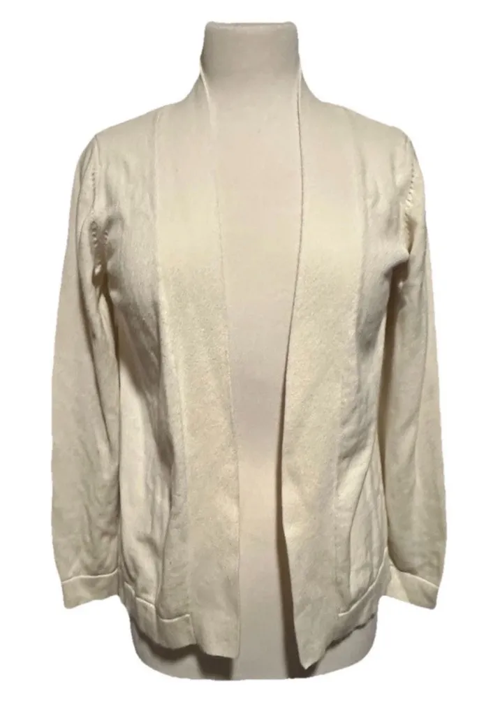 Orvis Small Knit Cardigan Ivory Cotton Cashmere Minimalist Relaxed Open Front - $22 - From Kathleen