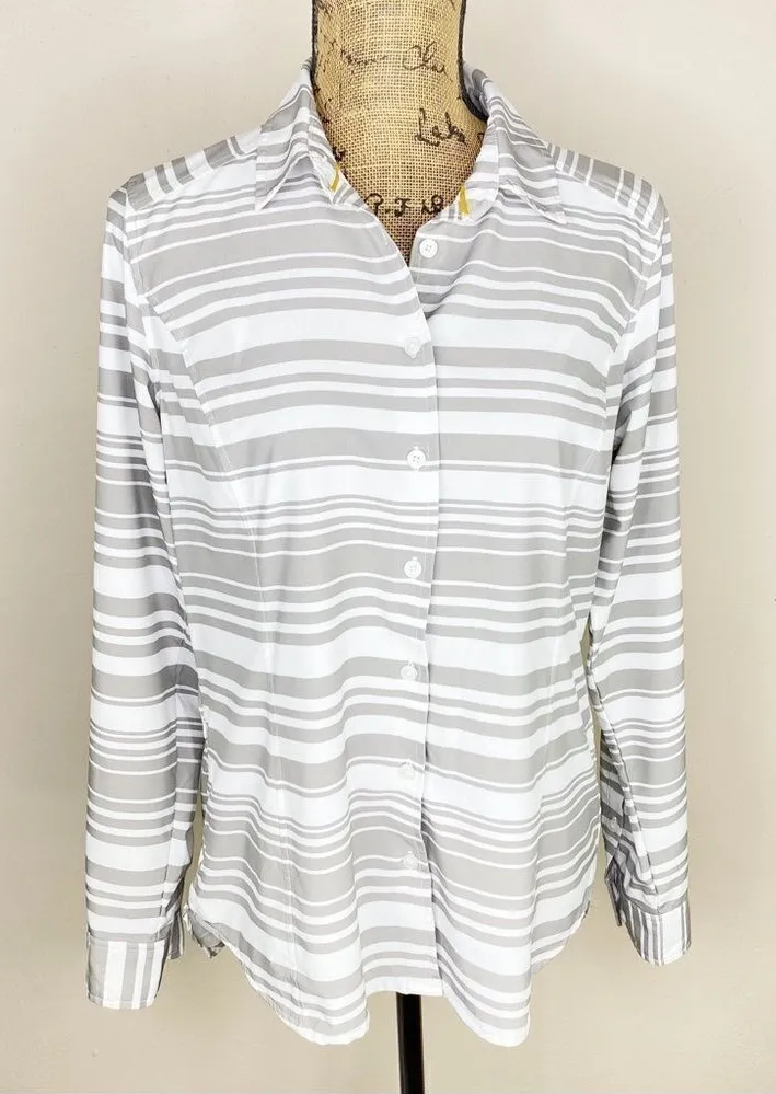 Orvis Striped Button Front Long Sleeve Shirt Taupe & White Size Small Medium taupe & white color s... Show more