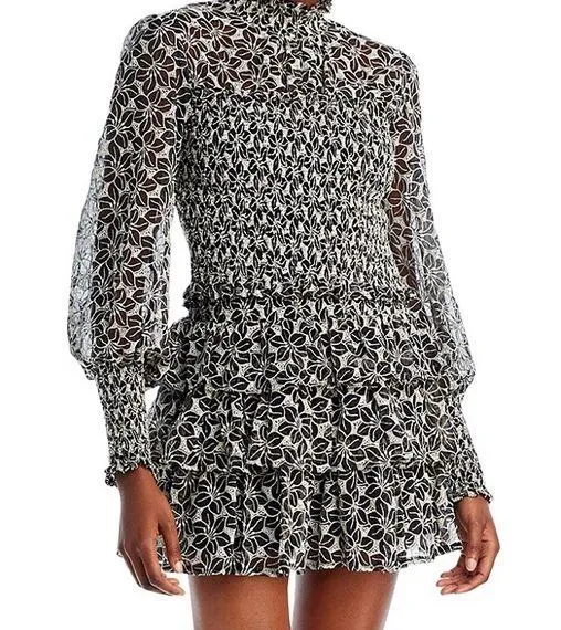 En Saison Embroidered Mock Neck Top Blouse Size S, NEW with tag Detail: • Mock neck • Long sheer sleeves • Back loop-and-button closure • Embroidered • Lined • 80% polyester/20% cotton; lining: 100% polyester • Hand wash MU-3