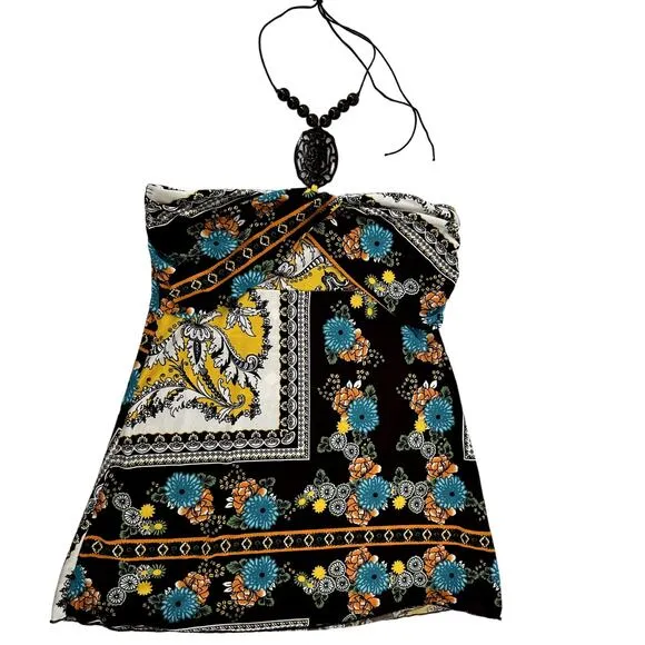 Charlotte Russe Halter Top Floral Printed Y2K Boho Beaded Paisley Multicolor approx 15" pit 19"... Show more