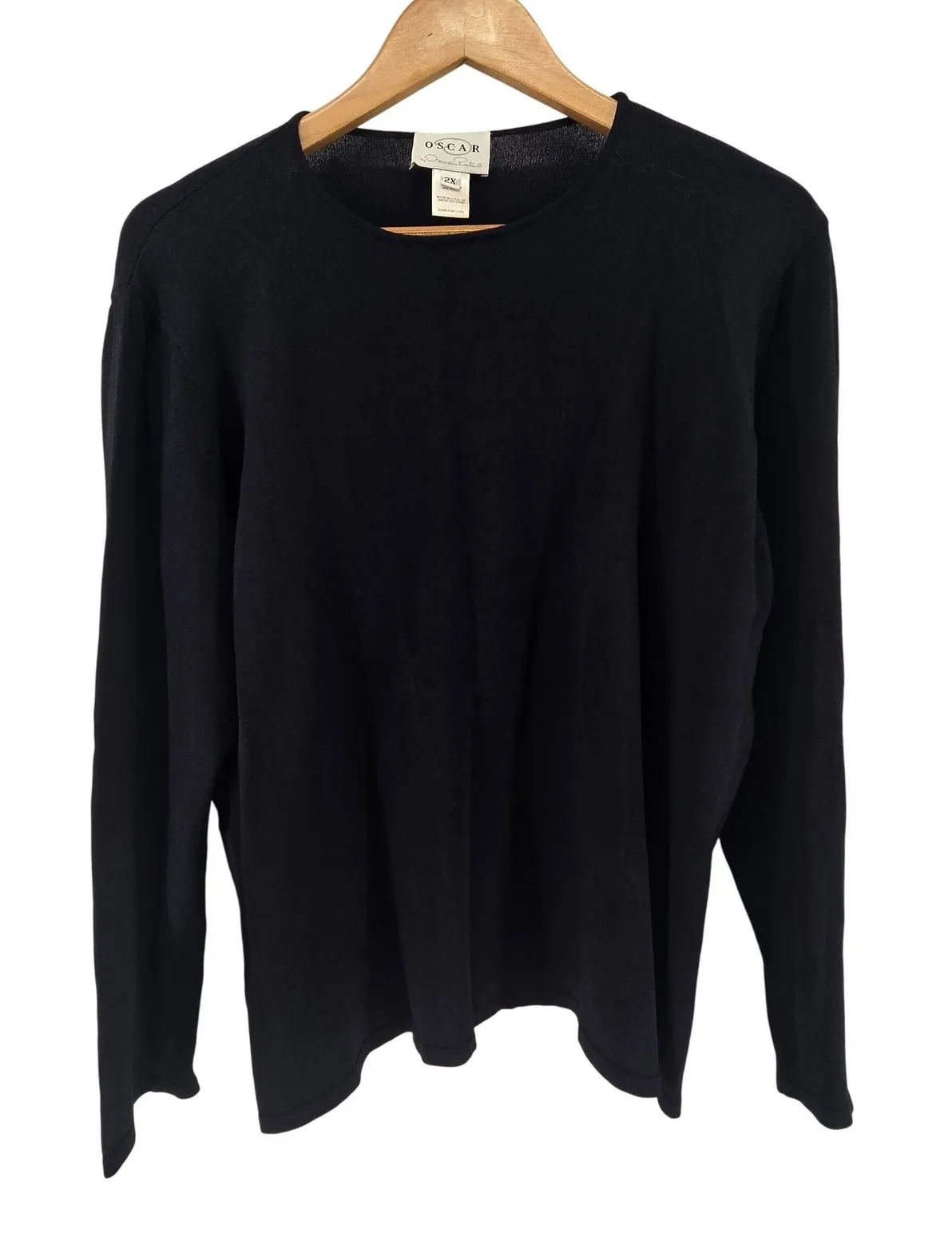 Measurements: • Chest (armpit to armpit): 21 inches • Length (shoulder to hem): 23 inches Style: Pullover Department: Women Material: Viscose, Nylon Neckline: Crew Neck Theme: Classic Type: Sweater Sleeve Length: Long Sleeve Features: Lightweight, Stretch Pattern: Solid Fabric Type: Knit Keywords: Oscar de la Renta sweater, womens plus size sweater, navy blue knit top, long sleeve sweater, viscose nylon blend, 2X top, Oscar by Oscar de la Renta, classic knitwear, work appropriate top, comfortable sweater, everyday top, elegant sweater No flaws, gently used, great pre-owned condition! Smoke free, cat friendly home. Wash to wear is always recommended. Fast shipping 1-2 business days! Thanks for much!
