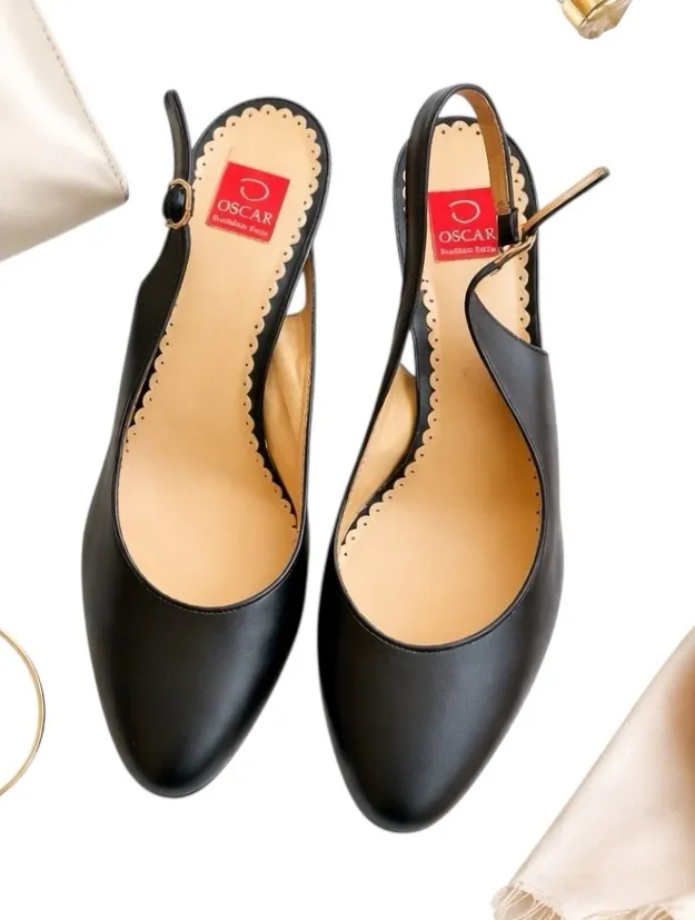 Oscar de la Renta Carmen slingback heels crafted in smooth black leather with an elegant almond toe... Show more