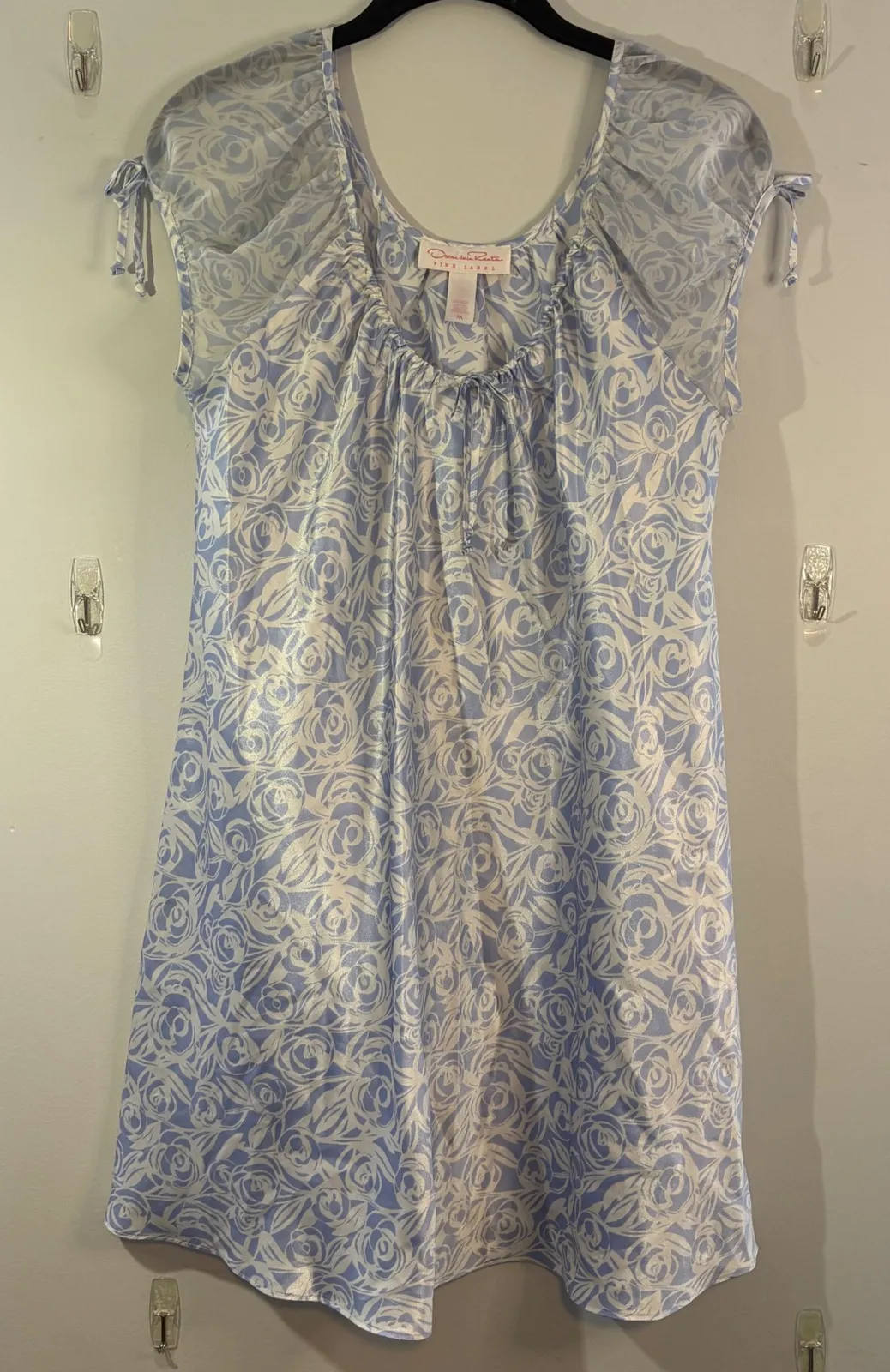 EUC Pit to pit 22" Length 30" 100% Polyester Machine washable Keywords: Oscar de la Renta nightgown, floral nightgown, blue nightgown, white nightgown, short sleeve nightgown, womens sleepwear, ladies nightgown, size M nightgown, polyester nightgown, comfortable sleepwear, designer nightgown, luxury sleepwear