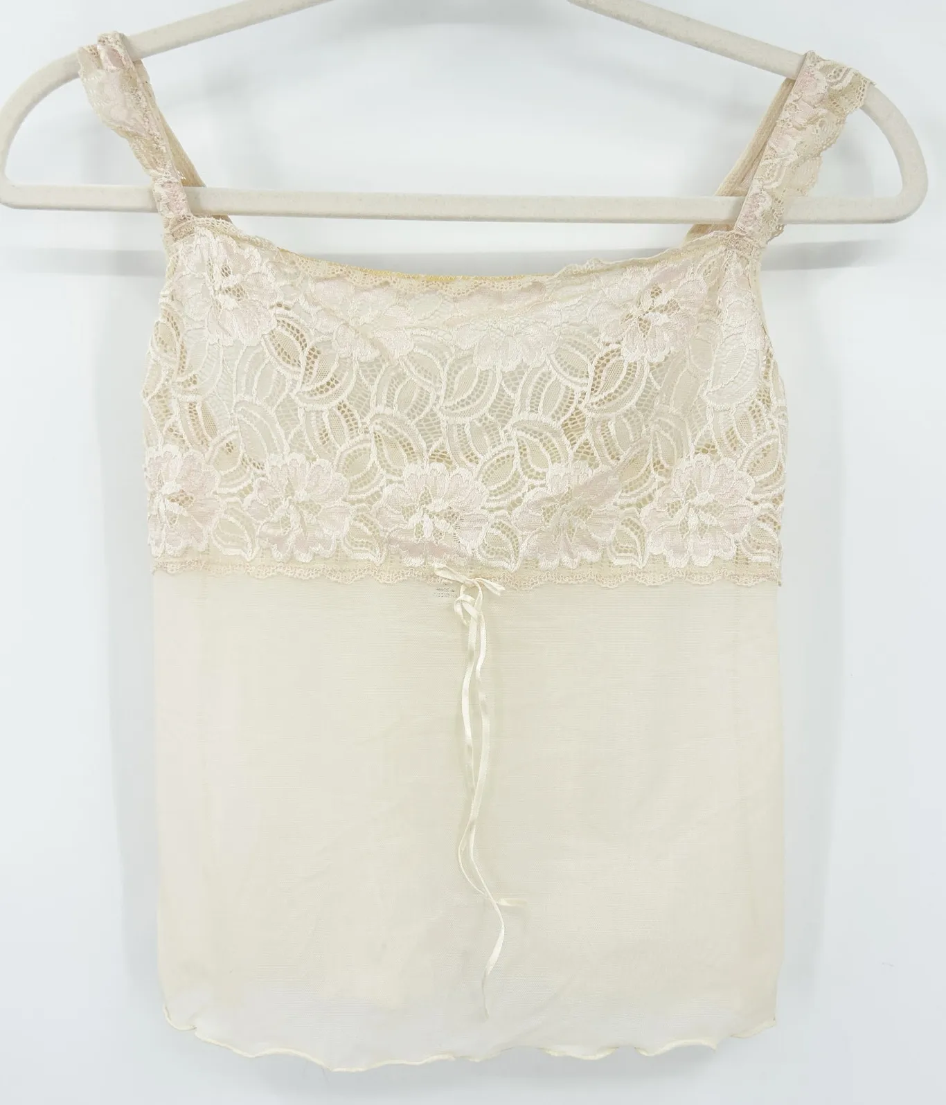 Oscar De La Renta Womens Y2K 90s Fairycore Coquette Bridal Lace Tank Cami Top in Cream and Pink. Siz... Show more