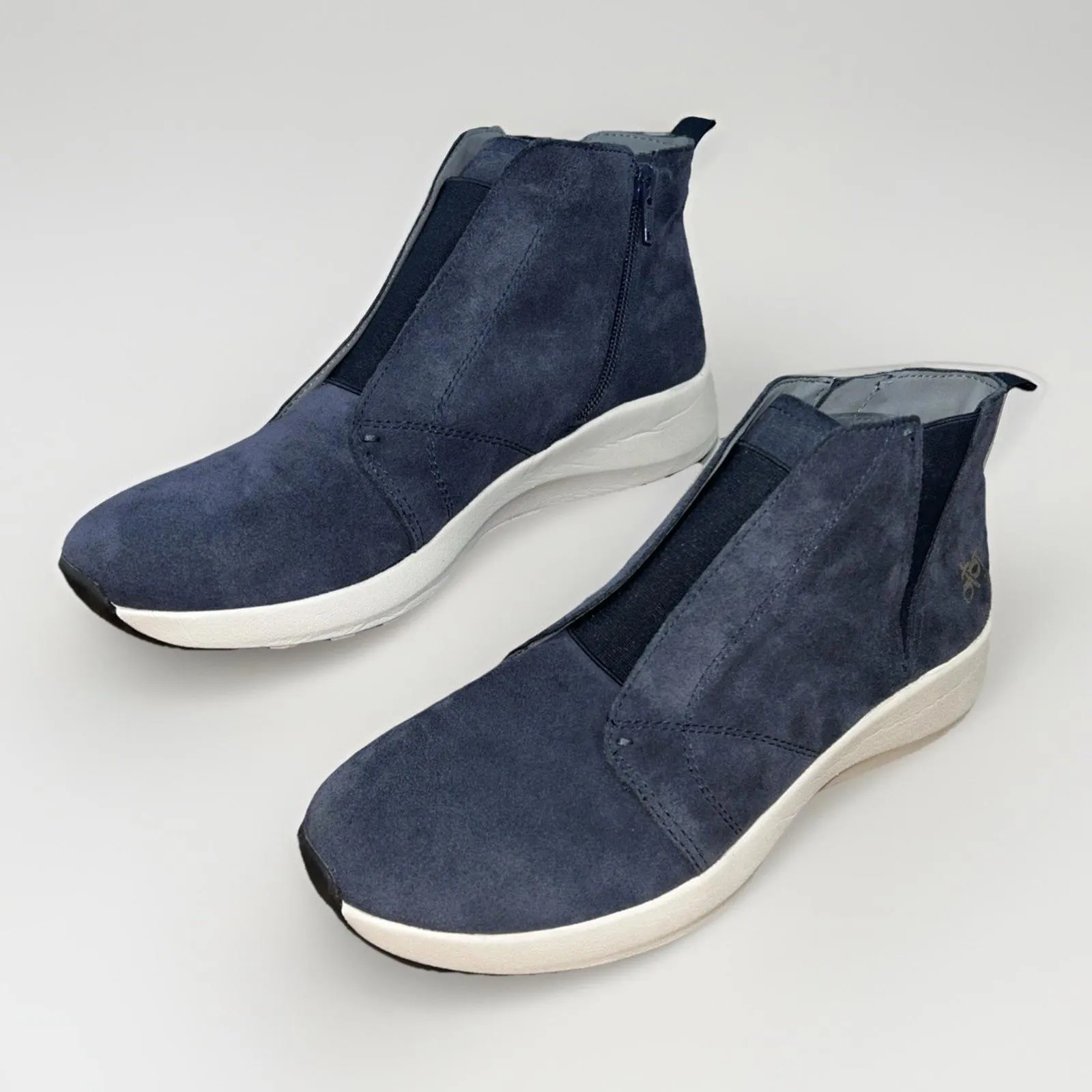 Used only once. Like New. The OTBT Bethel Blue Suede Leather Zip Ankle Booties are stylish and comfo... Show more