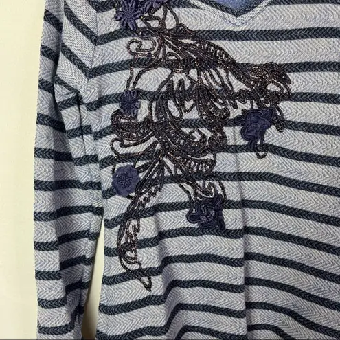 Soft Surroundings Syrah Blue Stripe Floral Long Sleeve Knit Top Very good used condition, minimal s... Show more