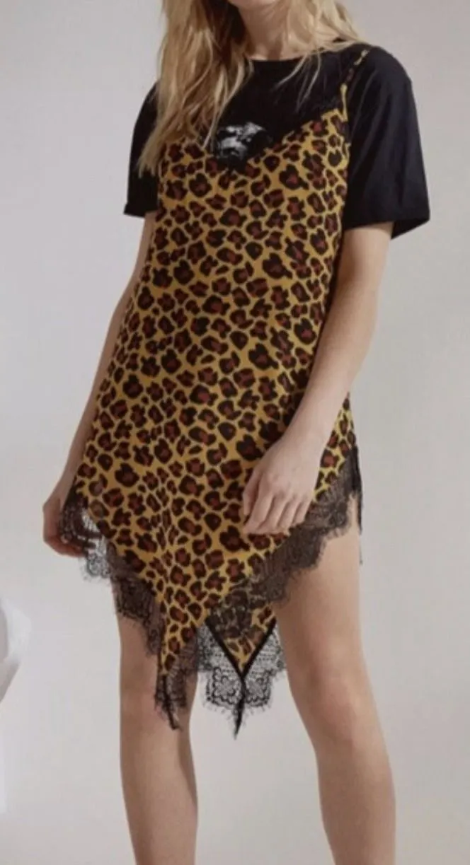 Keywords: Out From Under, Urban Outfitters, Leopard Print Dress, Mini Slip Dress, Lace Trim Dress, Animal Print, Womens Dress, Casual Dress, Party Dress, Spaghetti Strap Dress, Summer Dress, XS Dress, Yellow Dress, Black Lace