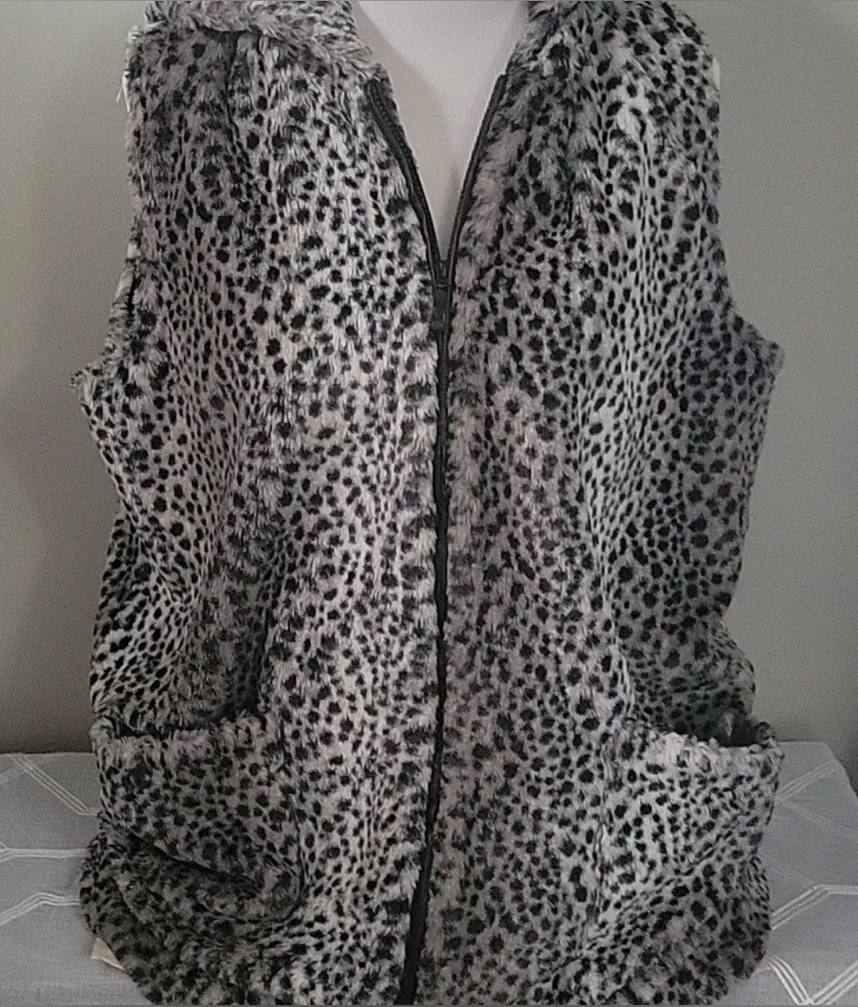 Outdoor Edition by Parkhurst Faux Fur Vest – XL Bold and cozy, this black-and-white spotted faux fur vest from Parkhurst’s Outdoor Edition is a standout layering piece. Features a full front zipper, side pockets, and a luxe animal-inspired print. Made in Canada and fully lined for comfort and warmth. Pit to Pit 22” Size: XL (TG) Condition: Excellent, no visible flaws Made in Canada Zip front, side pockets, fully lined #ParkhurstStyle #FauxFurFashion #WinterLayering #CanadianMade #AnimalPrintVibes #StatementVest #PoshFinds #XLStyle #ColdWeatherChic #ZipUpAndGo #EcoChic #VintageInspired #LayeredLooks