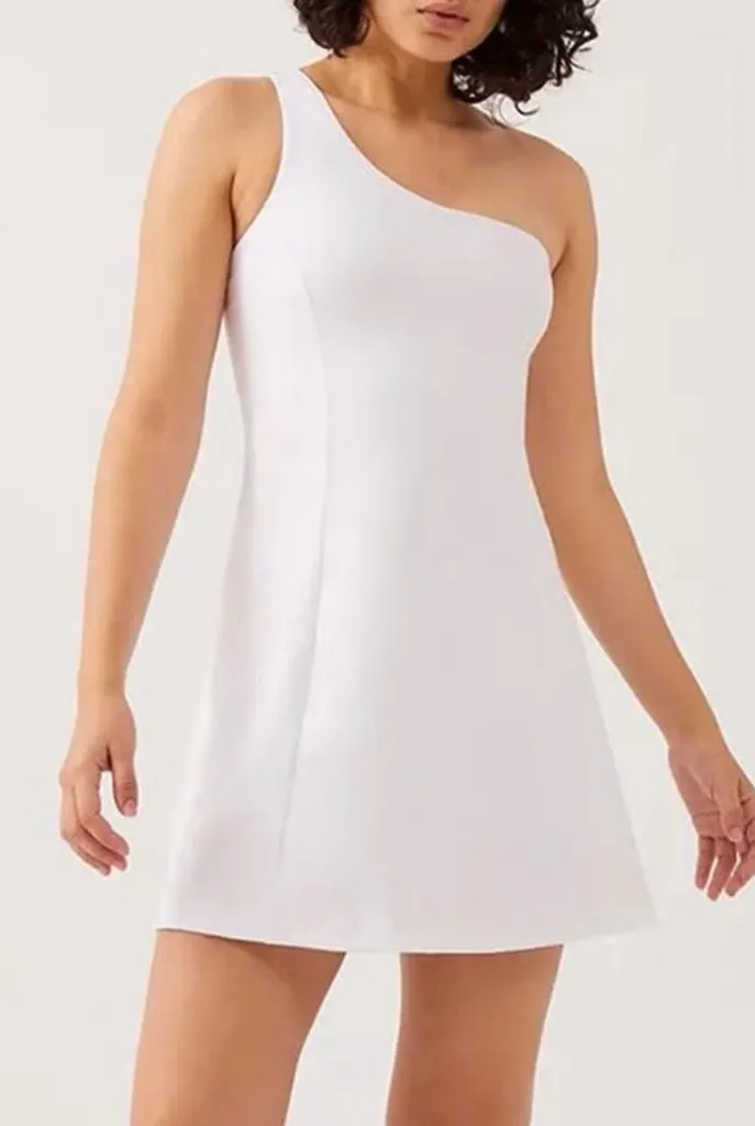 Chic one-shoulder dress by Outdoor Voices. Sleek and stylish design. Ideal for any event. Size Smal... Show more