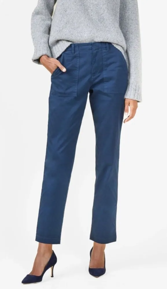 New! Women’s size 4 Outerknown Emory Stretch Utility chino pants. Organic cotton material, color is Ink (navy blue). Approximate flat lay measurement: Inseam: 26in Rise: 10.5in Waist laying flat: 15in