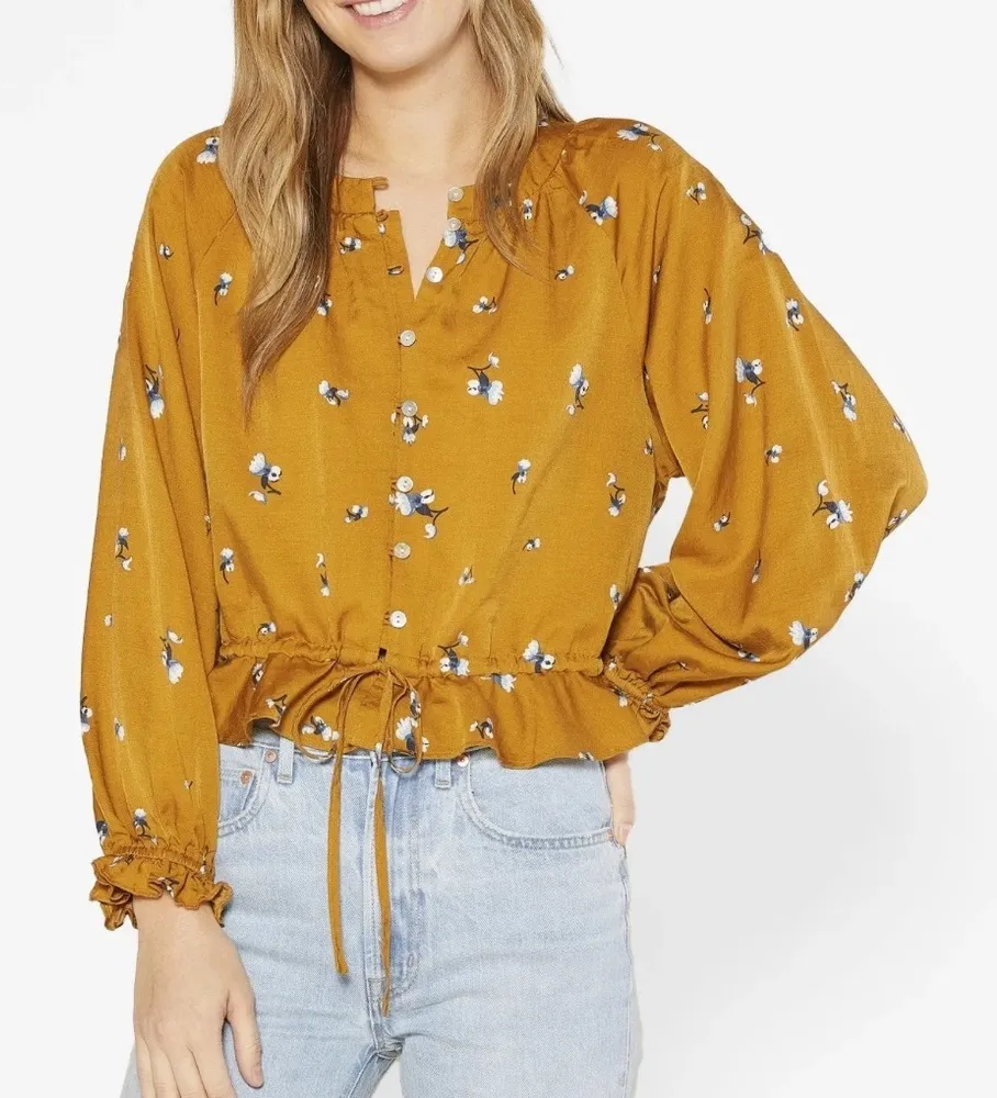 Outerknown Poet Blouse Mustard V Neck Button Waist Tie Floral Blouse S Gold - $64 New With Tags - From Audrey
