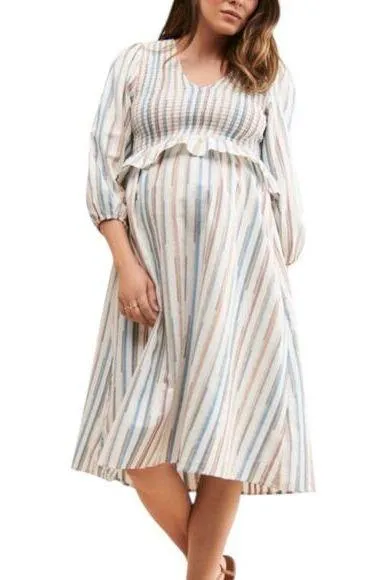 Frances Hart Maternity Maritza Midi Dress. This everyday dress has a stretchy smocked bodice with 3/... Show more